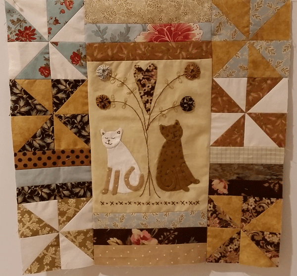 'A Kittens Tale' is an older pattern from 2008, so that nobody is carrying BOM kits any more. But I was fortunate to find a retailer with the patterns, which are in color yay. I picked fabrics from shabby fabrics.com that felt similar in hue and value. These soft blues and browns make me smile.