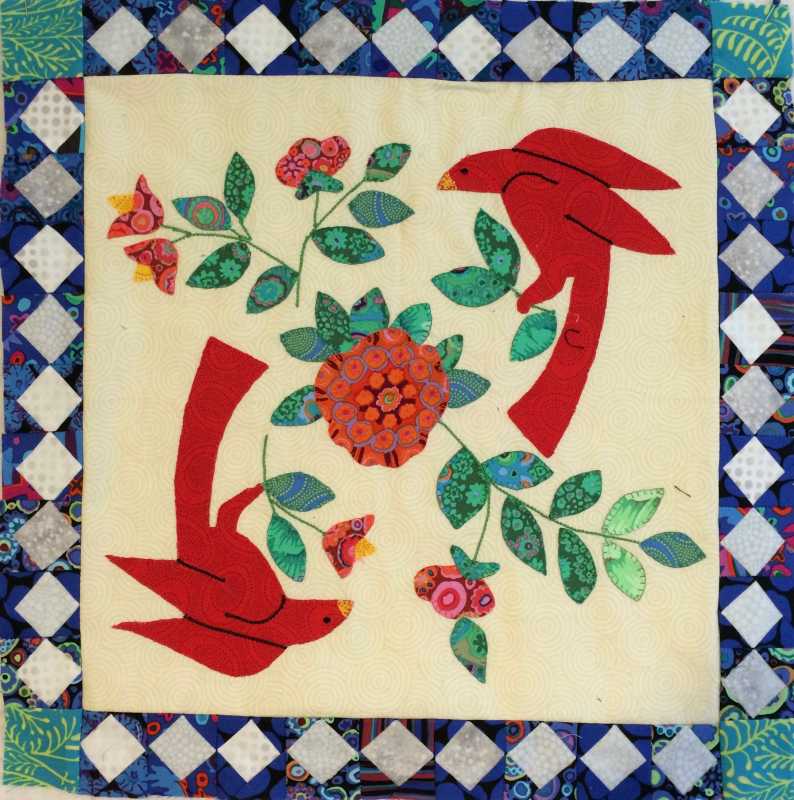 fabulous appliqué by many- I uploaded my own block and month 2 border on another strand but decided to join in here as well.