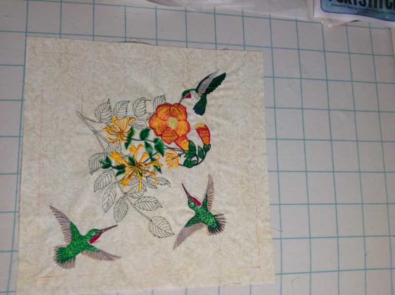 Trimming—Foundation piecing only. Place the completed block, face down, on a padded surface and press it. Measuring from the center, trim the block to 14? square.