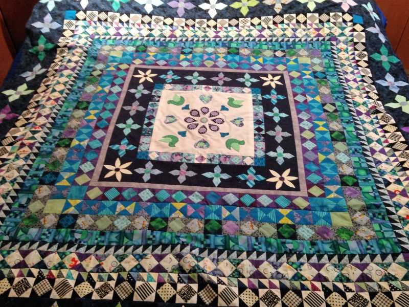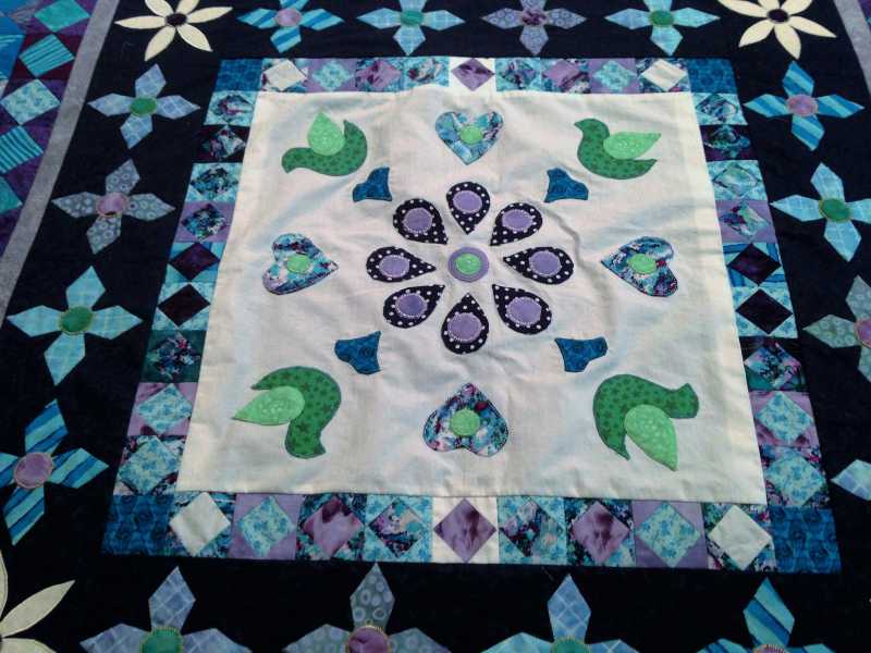 I have decided that after all this work it should be a bit larger so I can use it on my bed so I intend to do another 'diamond in a square' border and another printed fabric border to bring it up to a Queen bed size.
