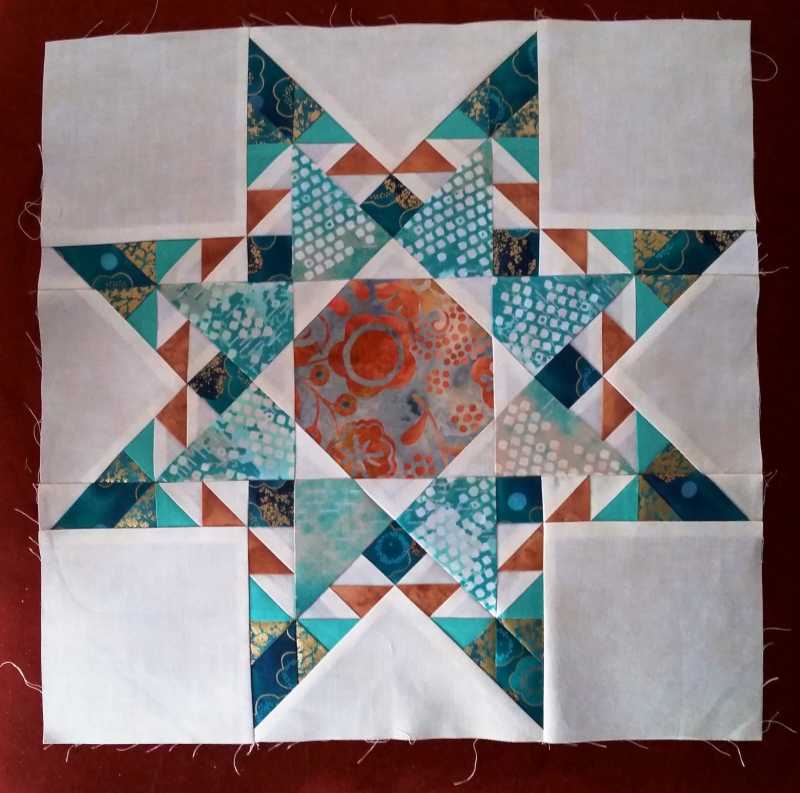 I finished the block. Here is the sample using the template as a guide for the 1/4" seam described above.Originally posted by "Renata" post=139148For anyone still having a hard time getting a 16 1/2" block and having trouble getting a perfect 1/4" seam... I took a slightly different approach to getting the 1/4" seam right and it seems to be working so far.