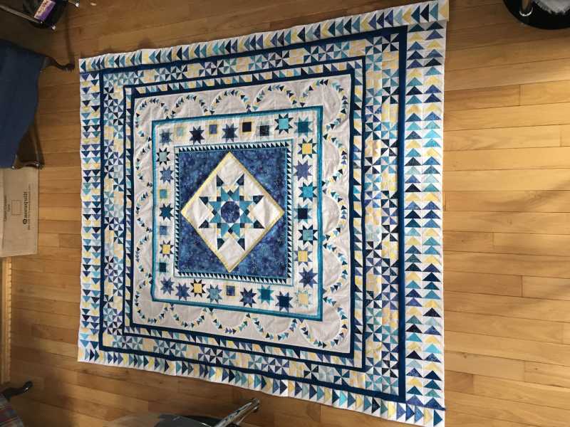 Oh crap, I've sewn my first delectable mountain strip, and it's shorter than my quilt, by about an inch. So it'll be a lot more if I add a border between. Has anyone else had this happen? I can narrow my seams on the other 3, and do a LOT of ripping on the first one. I'm also considering just adding a fabric strip to both ends...rats. Any ideas?