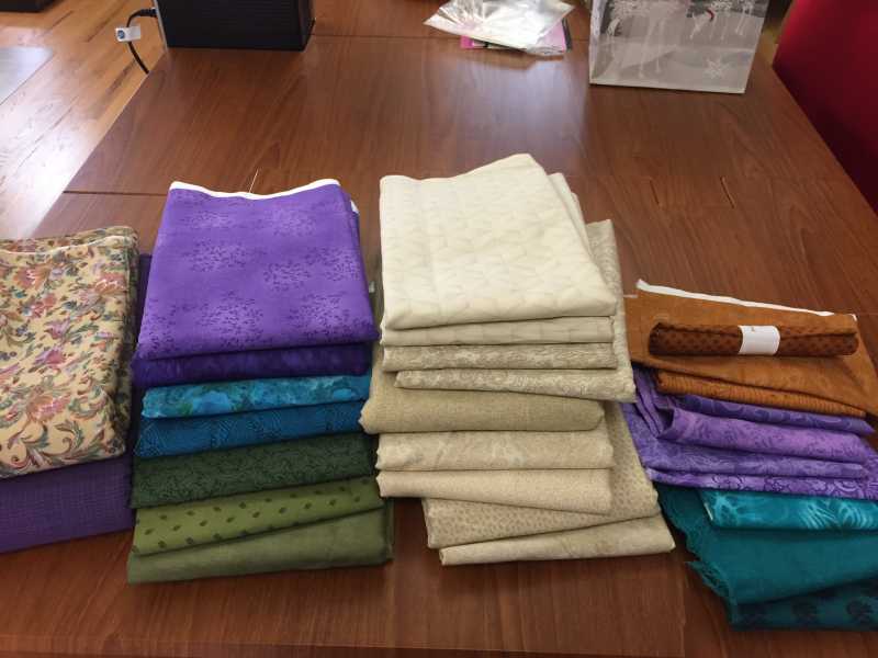 The photo shows the fabrics I started with, I added more from fat quarter or smaller pieces over the year in all those same colors. The Focus fabric is at least 10 years old.