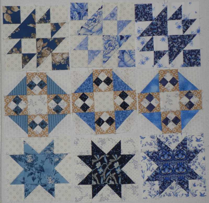 August blocks completed! I found No. 23 quite difficult, but maybe I'm simply slow? So much piecing, pressing, trimming. Anyway, they're all done now. I feel I've learned such a lot from this little exercise and especially from the generous and professional assistance of Barbara......many thanks again. Well, I've done it again...…….photo is upside down once again. Don't know how to correct this little glitch in the system.