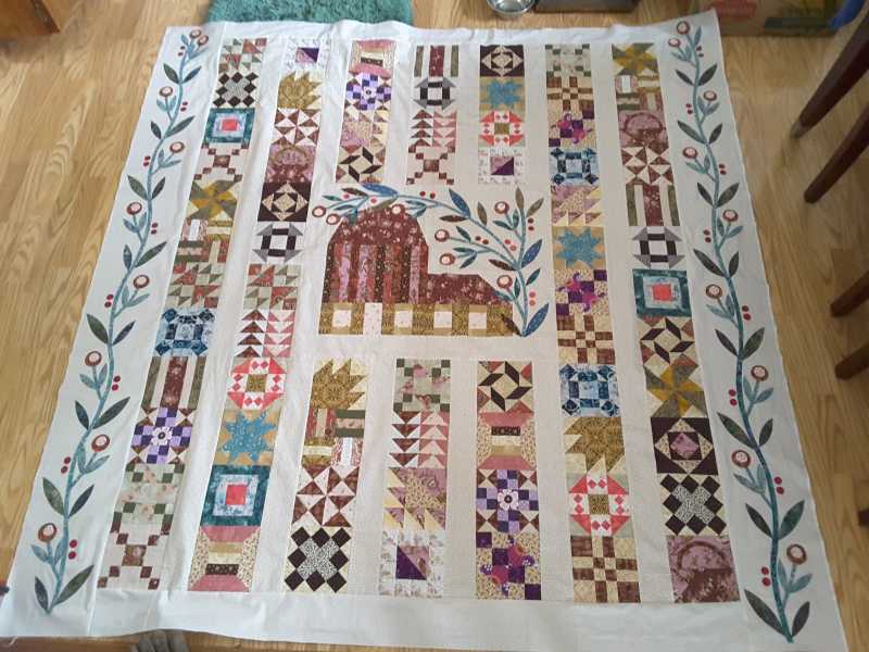 Beautiful barn with details! I am eager to see the appliqué methods used by the members. I’m very behind and just appliquéing around the barn with fusible. I see you used the blanket stitch and it looks very nice, so that’s what I’ll use. I’d love to try needleturn but since I’ve not done it before I think I’ll try it on a small project for starters.