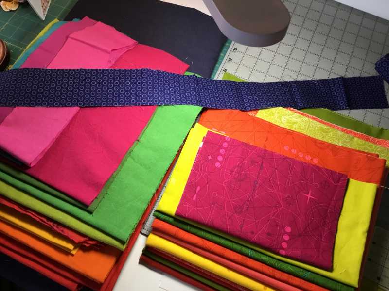 I have been diligently working on the fabric to make sure it doesn't run anymore. I have had to soak each color, at least 3 times, before the water is clear. I noticed that if I have the water over 140, it seems to work better. I was able to get the temperature up to 145 degrees. The last soak I kept the fabric in for 24 hours. Then, I washed the fabric twice in the washing machine to get all the Dawn soap out. The color-catcher didn't show any color, however, the lint basket still had some orange fluff. I'm starching the orange fabric now, and will keep working on the other colors.