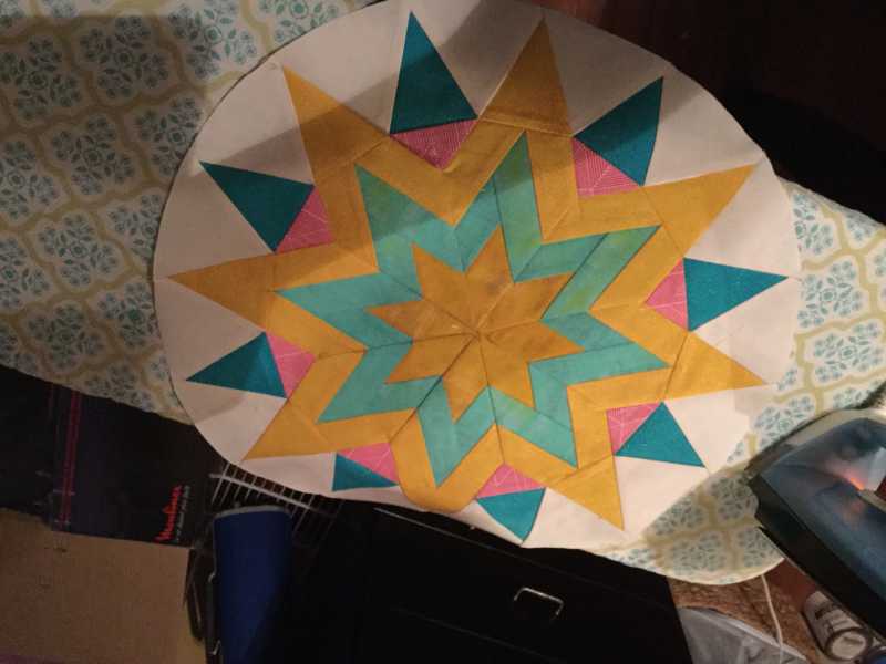 I am a bit late at the party but i just finished removing the paper off my first block. It is not perfect, but i embrace the little imperfections. One seam is giving me grief, I will look into making it better via pressing tomorrow.