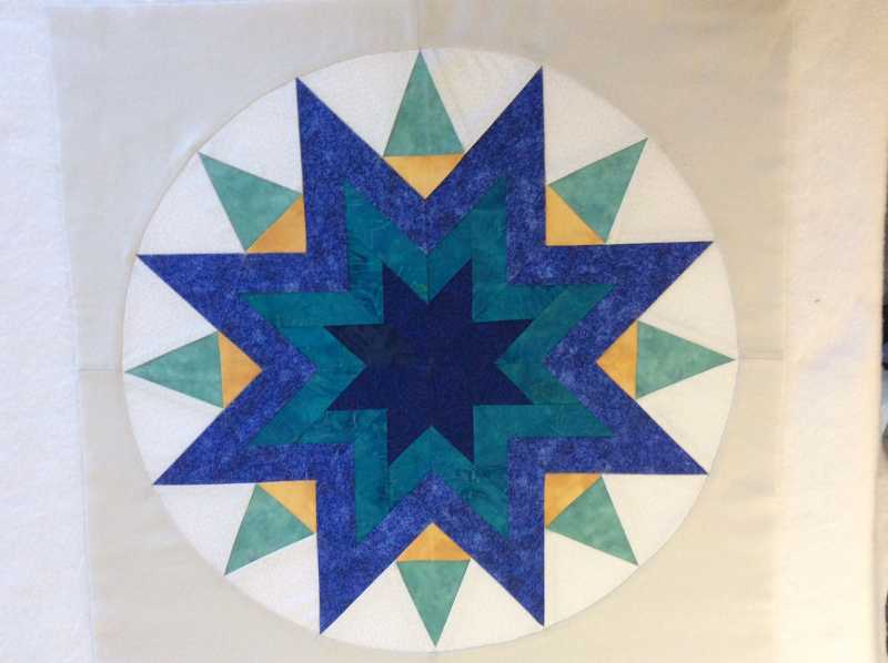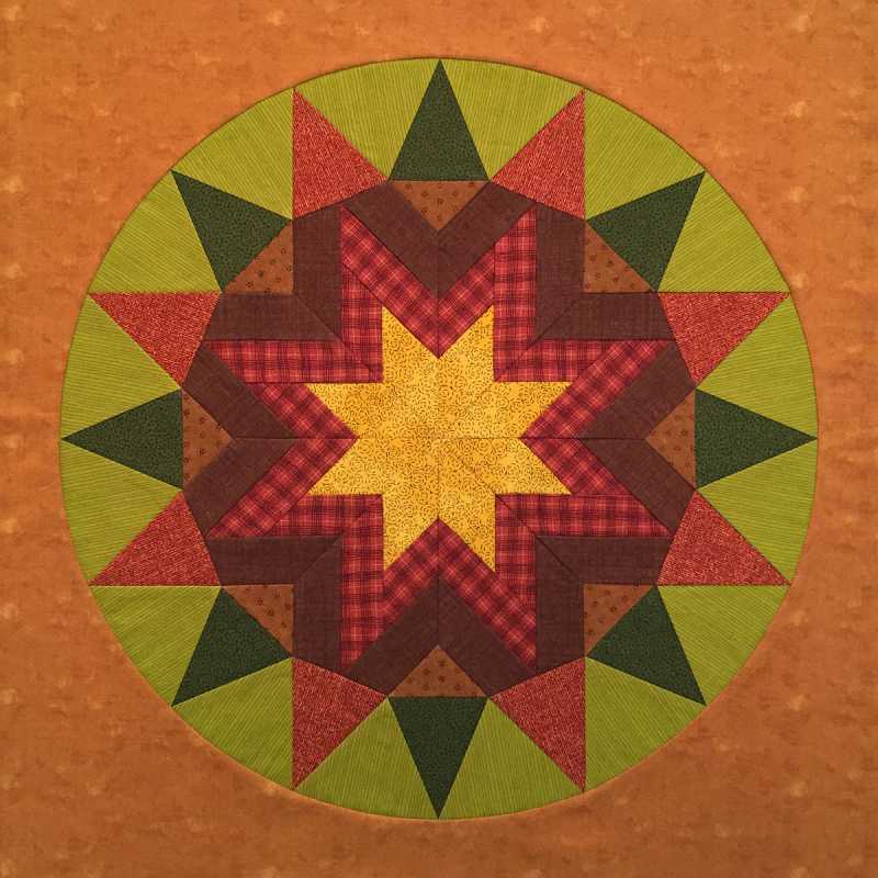 Yes, this is the full size block. I cut a 17-1/2" circle out of a 21" square for the background. As for stress relief, when you do something you enjoy that takes complete concentration you forget for awhile all of the other things you should be doing instead. When I was told we had a month to get out of our city home, I pulled out a 1000 piece puzzle in the shape of a leaf. We ended up getting 2 months but it took the whole time with lots of helpers. My husband really liked this block. He said those were his colors.
