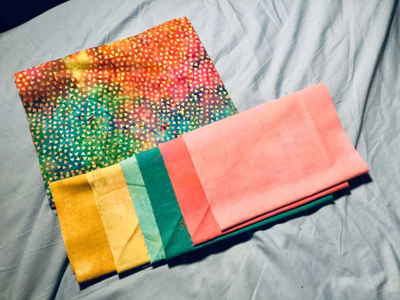 I have gone to the fabric store and picked these fabrics from the grunge line from Moda. The print is a fabric that was in my stash I only have 1 yard of it and I do not need to use it but the colors match perfectly.