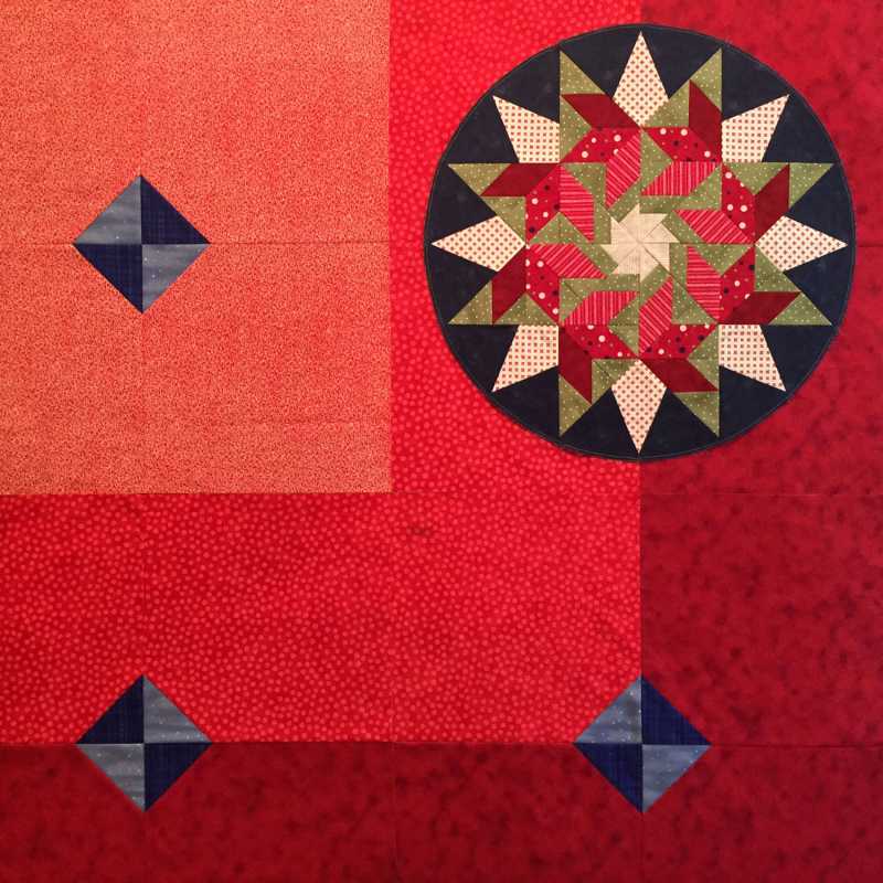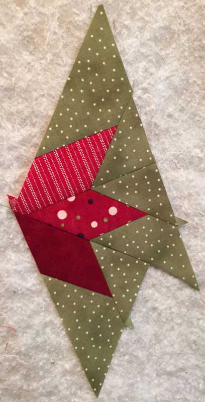 I really like the way you pieced the diamond with each of the three "leaves" as a whole piece. I already made block 2 and will make another with your method which requires redrafting the diamond blocks, but that doesn't look hard. I didn't like the way one of the leaves in the diamond is split. And also, I don't like the way the inner part of the wedge and the leaf near it do not match up. I may redraft the wedge also to fix that. Finally, the resulting block was "lumpy" with 8 areas in addition to the very center where a large number of pieces all come together. When I do this again, I'll be much more careful not to sew into the seam allowances, but to backstitch as I get to the seam so the bulky seam can fan out. Hope that works.