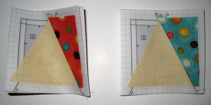 2. The S.F. paper curls considerably more than the O.D. paper when pressed with a hot iron. S.F. paper on left with orange fabric in photo. This can be controlled some by turning the paper over and pressing on the back side. Also try using a mini iron and pressing only the seam allowance or use a wooden pressing tool with no heat.