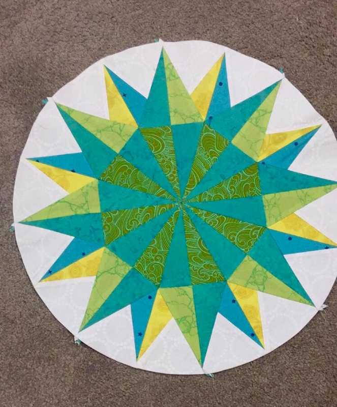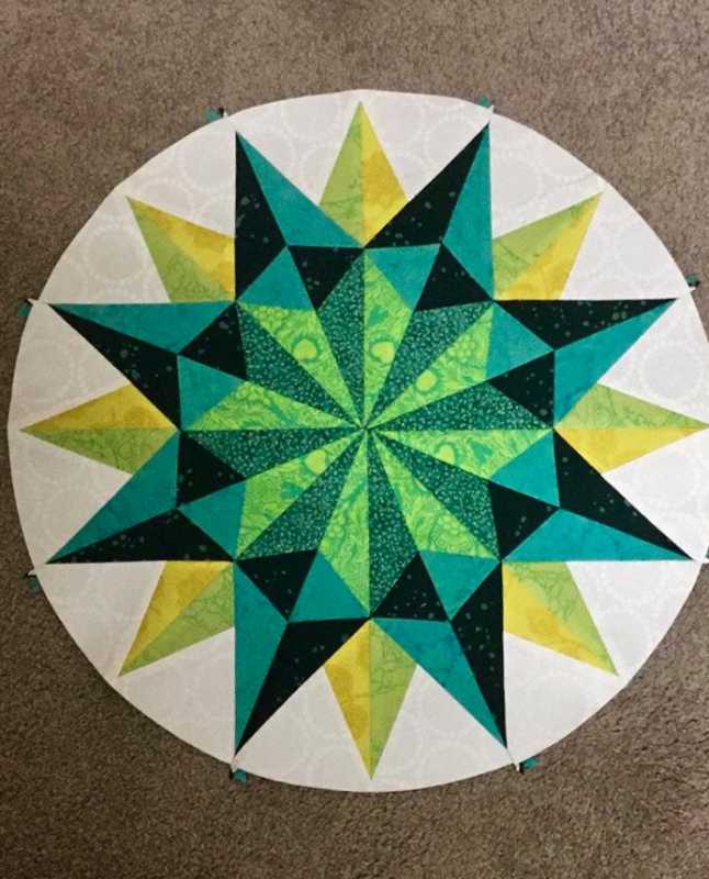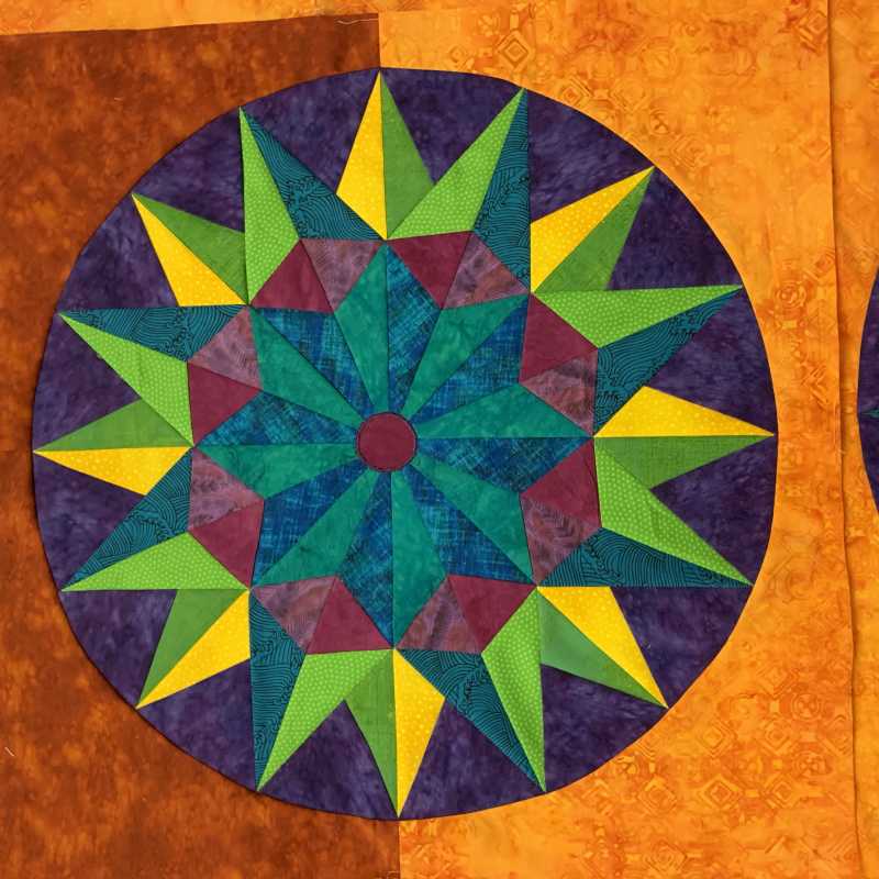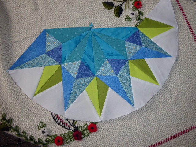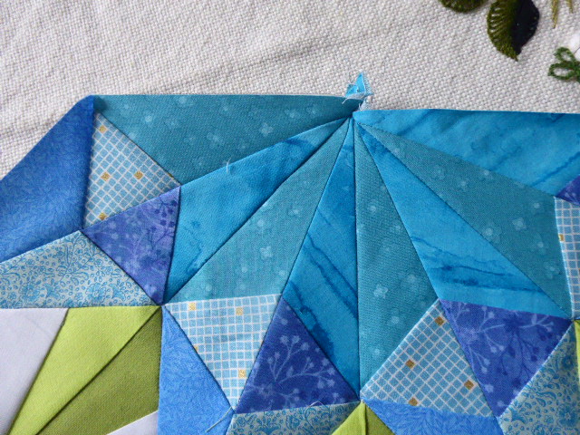 Brenda, I had a similar issue with one of mine. The diamond on the left is too far down. I unstitched the seam that joins that diamond to the rest of the pieces and used a long basting stitch to try again. When I got it where I wanted it with basting, I changed back to normal size stitches and re-sewed. That did it. I also knew I would be adding the small circle at the center to cover up any mis-matched seams and eliminate all the bulk. See how the center looks now?