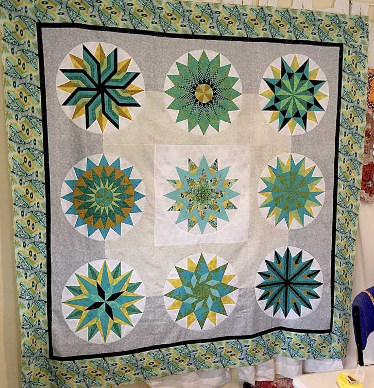 I am not a fan of paper foundation piecing, but figured I could do 9 blocks. I re-made one, not because the piecing was bad, but when I had all the blocks complete there was one that didn't fit with the rest.