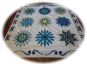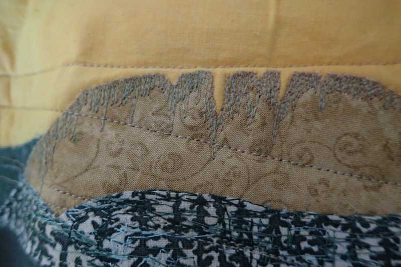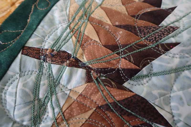 all the appliques in the background area. and maybe a little extra stippling. Great job, love the detail pictures. HelenW