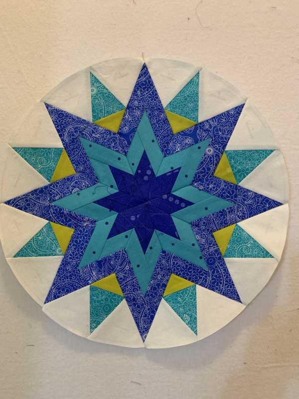 I’m still fussing over colours for March block and could have done better with February colours but having fun. Always wanted to do Mariners Compass and was intimidated by it. Thanks for making it approachable. I’m holding off on the corners to audition at the end. Thinking of shades of gold but will see how it unfolds.