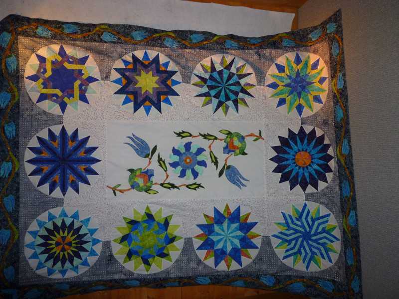 Finally got caught up! Life got in the way of quilting the last few months! Here are my blocks 5-8. I have not yet determined the placements so no corners have been attached. Photos are difficult, I am using combinations of Cherrywood fabrics, Silks, Cottonshots, and a few batiks. Looking forward to the last circle next month because quite honestly my interest is starting to wain.