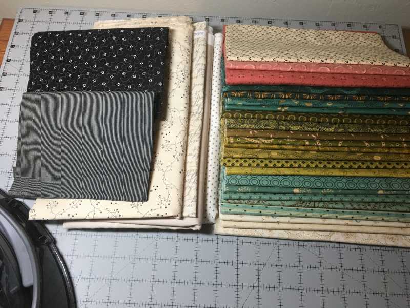 I will be using Kim Diehl fabrics for Afternoon Delight. Sage and Sea Glass collection with some Blush from Blush and Blue . Neutrals are from stash. Looking forward to getting started and keeping pace! In the meantime, Sizzle is calling, and I still