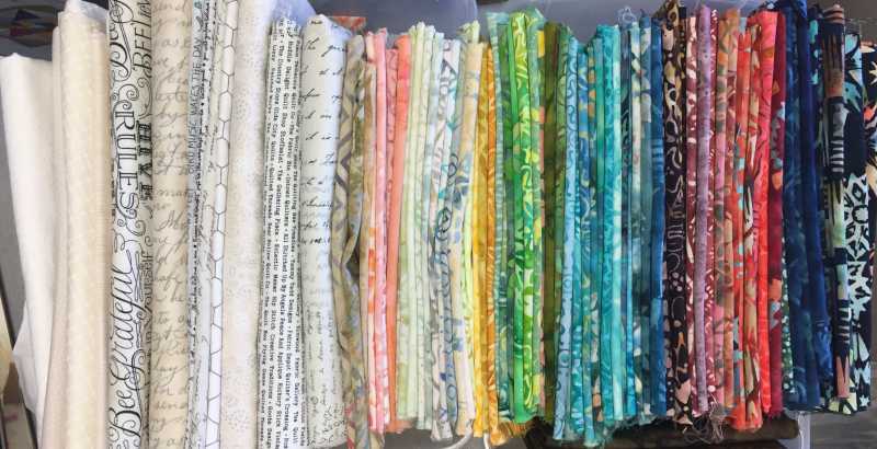So... yesterday was Small Business Saturday, and I always support my LQS on that day. My husband doesn't even blink when I get up early on that Saturday and head to town. I really wanted to get the neutrals that the BOM requires and I _never_ have in my stash. So I looked at the description for the kids very carefully. The photo shows about half colors and half neutrals. And it says there are 23 yards in the kit, and then another 5 yards for the border. So I"m figuring I"ll need at least half of the 23 yards in neutrals. I looked around through the Christmas fabric and the beach fabric and found neutrals that seemed like they would play well together. All were 40% off, and I got 2 yards of each, 16 yards in all. My LQS is Inspire Quilting in Plant City, FL. They're great people and I feel like I got a good start on what I"ll need. I'm looking forward to Dec 4 and seeing how close I came. This should last me until the next sale anyway. The colors are about 1/3 of the stash I'm prepping to go with it. I've won fat quarters from Row by Row for the past 3 years at different quilt shops, so I'm looking forward to using a bunch of them.