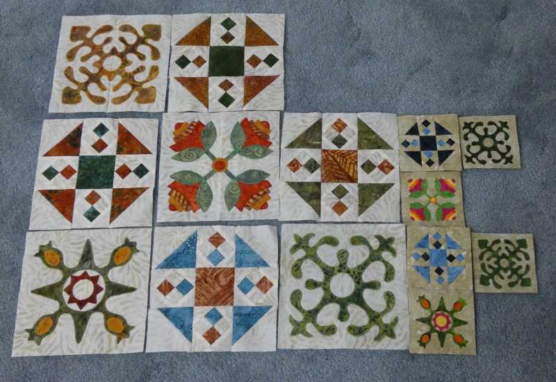 Last year I made Edyta Sitar's Dresden Blooms quilt. My daughter in law loved the prints and vibrant colors of Edyta's "Jelly Bean" fabric line used in the quilt. BUT, she needs an over-sized queen quilt for their bed and that completed quilt is not large enough. So, my plan is to use every single smidgen of leftover fabrics from that quilt and work it in to this beautiful pattern, plus fabrics from my stash. She does not sew, but is so appreciative of the time and love that is put in to these projects, and cherishes the quilts she has of her great-grandmother. I will be enlarging this quilt for her. I used needle turn applique for my applique blocks and enjoyed every relaxing minute of it!