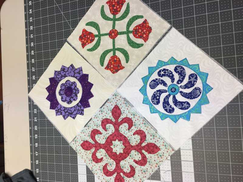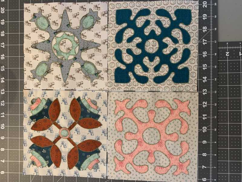 Your blocks are stunning perfect fussy cutting of your fabric choices and your workmanship is admirable. What appliqué technique are you using needle turn? Backbasting? Just love it!