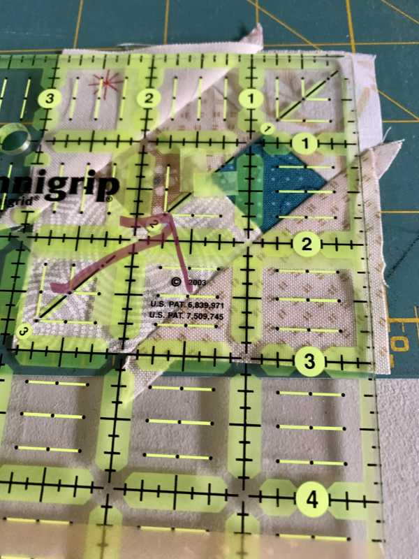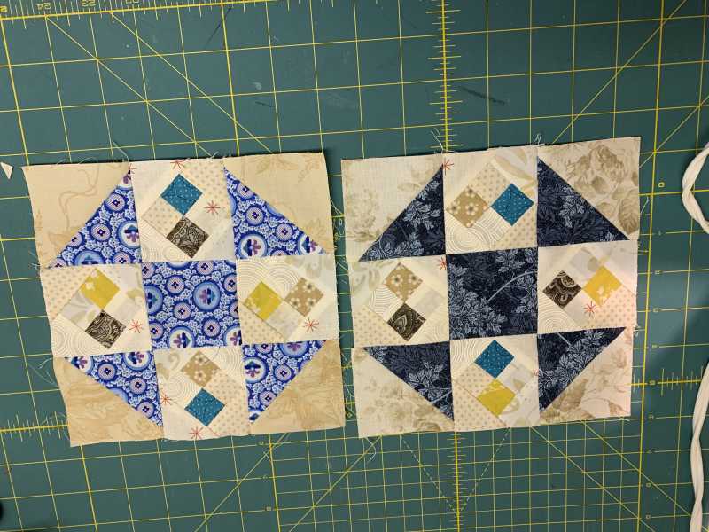 First two blocks done! I was pleased with my cute little "four patch" in the seam allowance, like Barbara showed in the video. I had used this method on a pinwheel before, but not on a four patch.