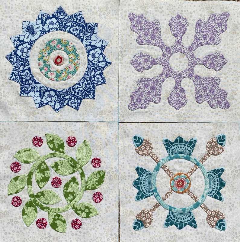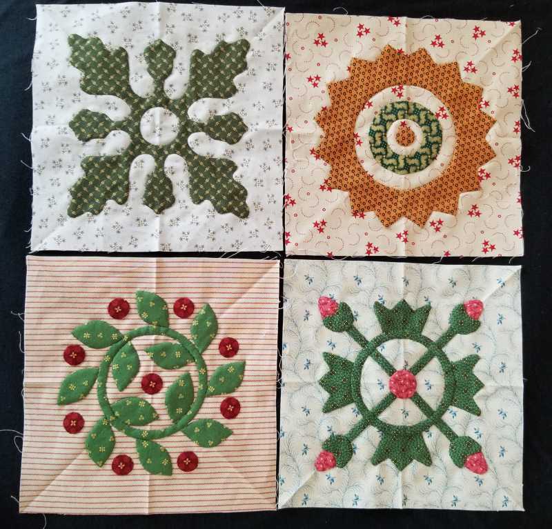 Finished my April applique blocks. I changed the centers of two of the blocks after getting the idea from the person