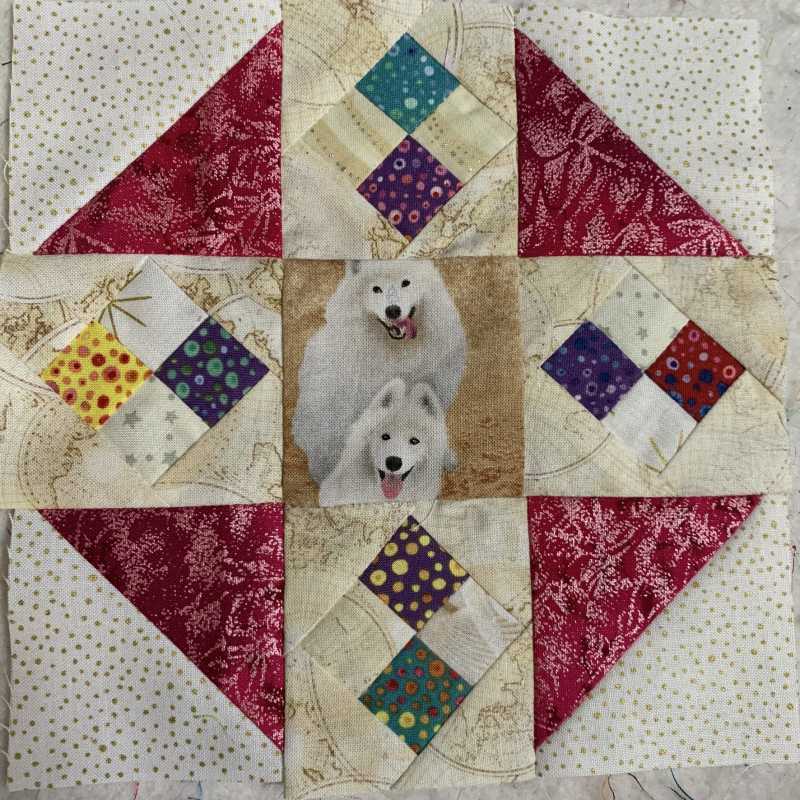 Looking at the finished quilt photo, it doesn’t seem to make much difference what direction the four-patches are oriented, however, I looked closely at Sue’s quilt, and like the way she oriented all of hers to sort of cross the shoo-fly. I haven’t started on mine yet, but hope to have all nine done this month!