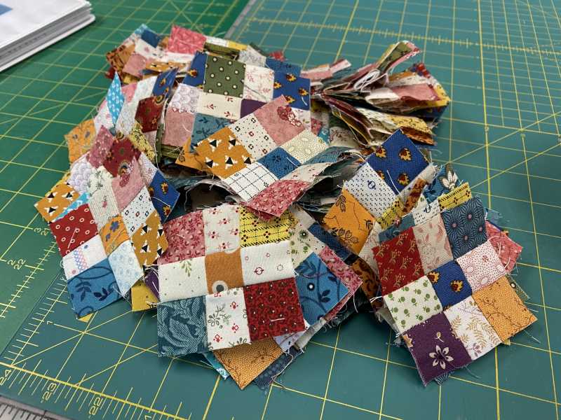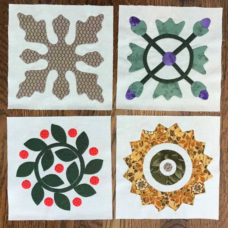 Here are my four applique blocks for April - finished just in time for the new ones! I’m going with machine applique because I have way too many hand projects going right now. I’ve also made about a half-gazillion 9-patches and still have another half-gazillion to go! They’re all cut and I’m sewing them together as leaders and enders so they’re really going pretty quickly.