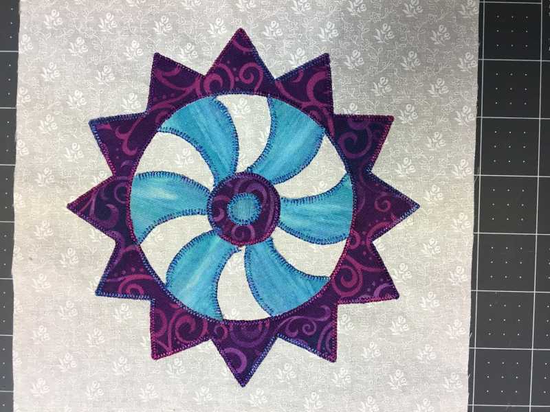I love all of the applique blocks but my time is limited so I decided to do stack 'n whack blocks instead. I searched several times on line for a large print fabric with the colors I wanted, but settled for a fabric I already had. I plan to remake some of the shoo fly blocks to better match these colors.