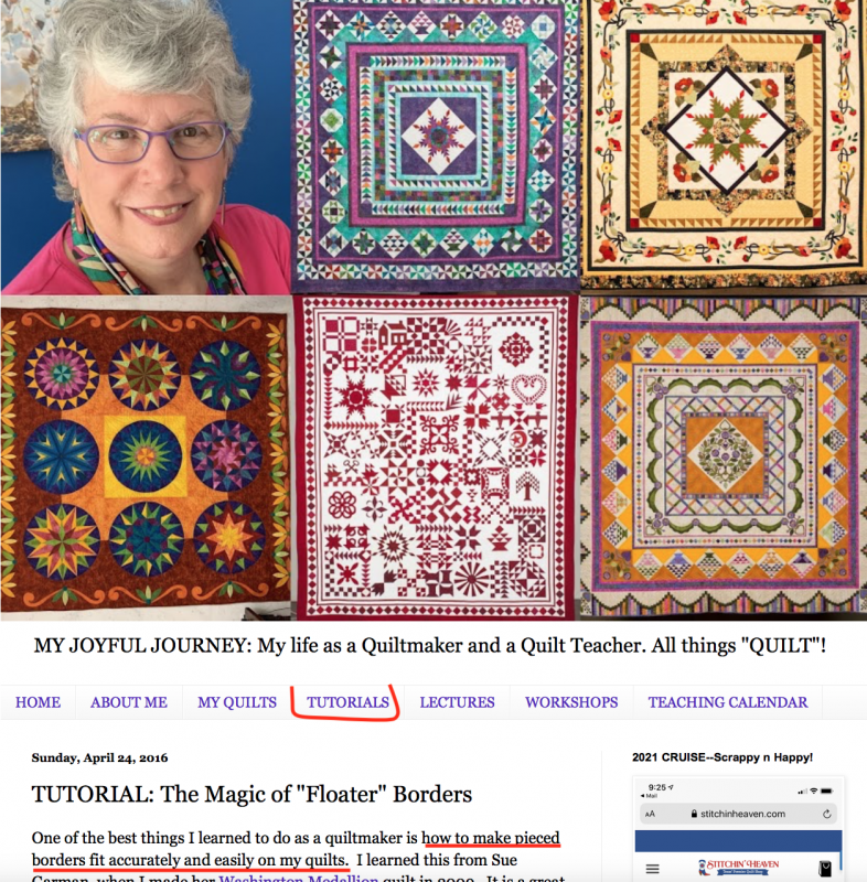 Thank you Barbara, I went to your blog and the area for tutorials and found the tutorial on using floater borders to make pieced borders fit. It is excellent.
