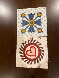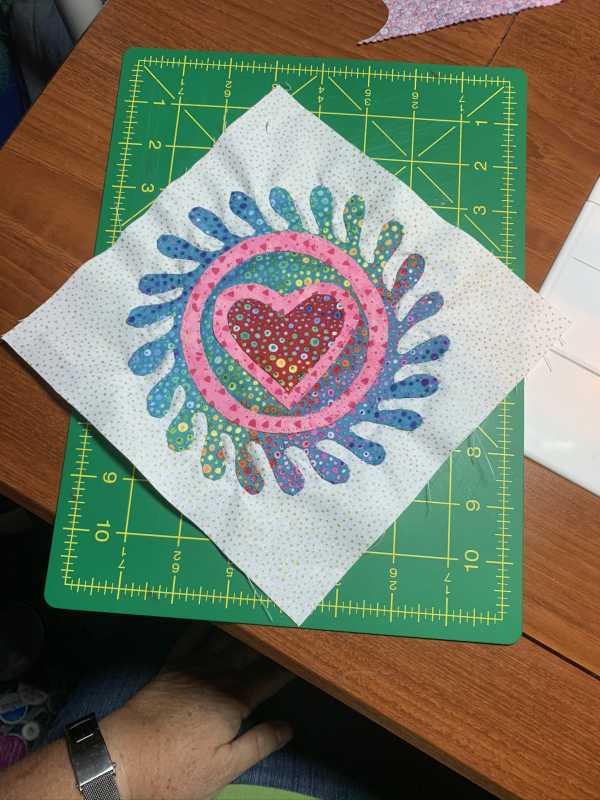 I did turn the heart for on-point placement, but my "petals" are spinning clockwise instead of counterclockwise. I planned to back baste that portion and didn't think about reversing it until I had already drawn the block. The clockwise rotation didn't bother me, so I proceeded.
