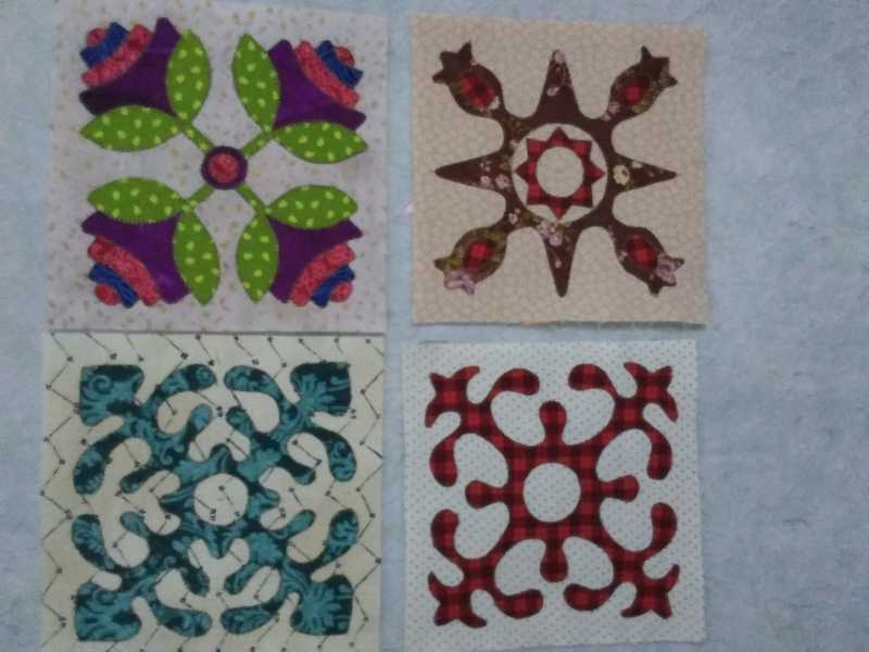 Meegwat, your blocks look good. I tried Appli-stick and had trouble. While removing the backing paper from the cut out shape, one part immediately flopped over onto another part of the shape and it was ruined—unable to unstick it. The good thing about that product is you fuse the cut out pattern to the back of the fabric, then remove the paper to reveal sticky stuff that allows the appliqué to be secured to the background.