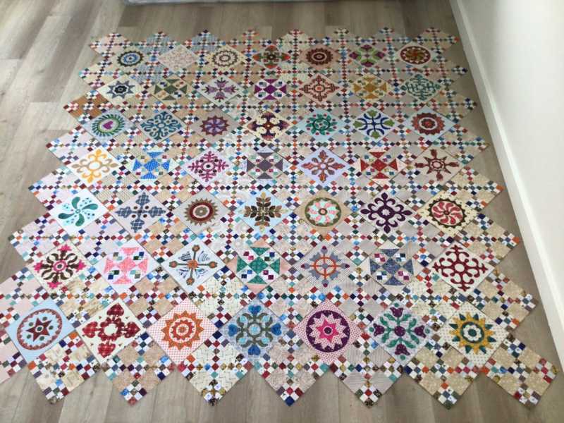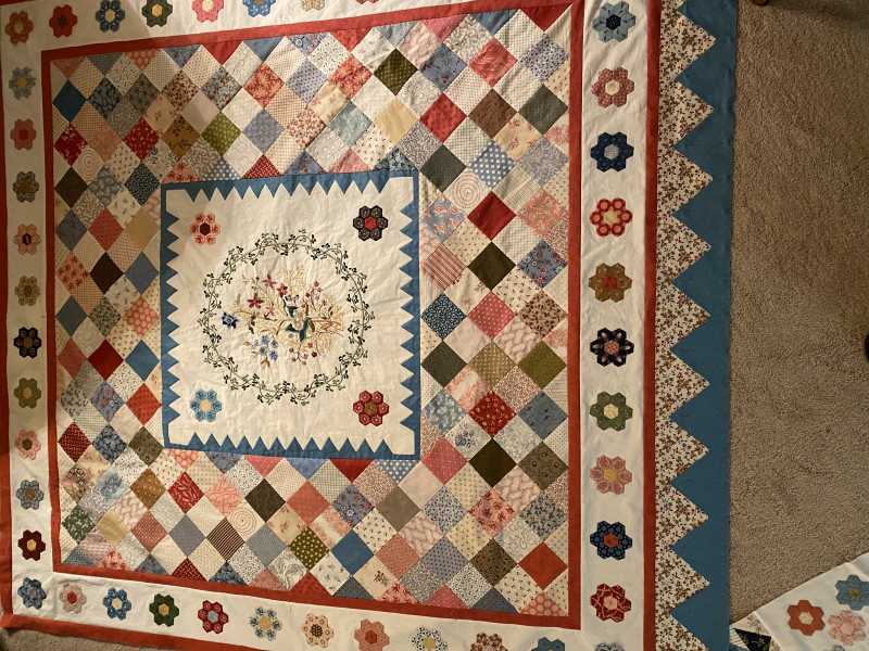 Wow you must be thrilled to the moon and back it looks spectacular!!! what wonderful progress and a great quilt to remember this year lots of gorgeous fabrics wonderful workmanship perfect execution of placement I don't think you need much play at all!!