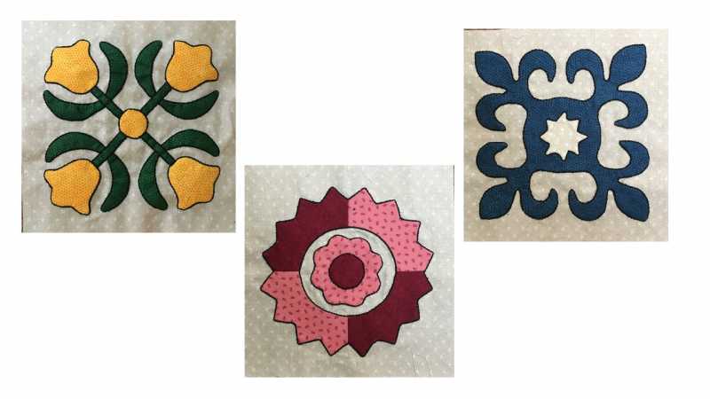 I have finished my February applique blocks but only have picture of three. I completed the fourth one last night but still need to do my outline stitching. I still have one from January to make and I will be up-to-date.