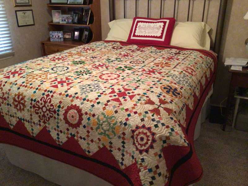 We have come to the end on another great Block of the Month quilt. See a lovely edge-to-edge quilting design—this quilt does not need fancy custom quilting, unless you want to invest that kind of time.