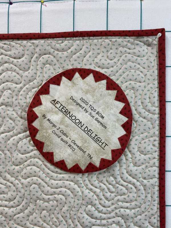 I quilted it myself on my HandiQuilter16 with a simple pantograph. I have put a label on every quilt that I've ever made and this was no exception, and I hope you will add information to your quilt too!