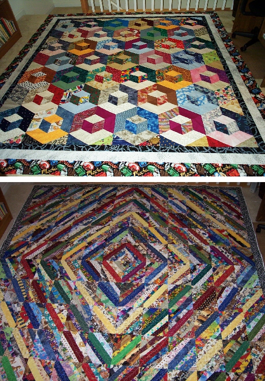 Love your scrappy quilts CarolD. The tumbling blocks look just great.