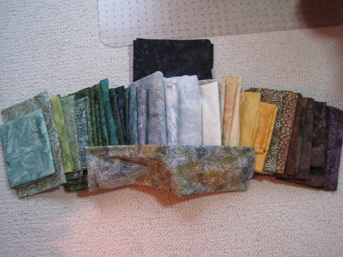 Hi there! I've been eargerly watching everyone's 2011 BOM ideas. So I thought I'd share mine. I'm not much for applique so I'll be doing something different. For some reason I HAD to buy a lot of greens lately, even before I saw the 2011 BOM. Well, I've looked through my stash, purchased a few more fabrics and have come up with my palette. My quilt will be tree themed. What do you think?