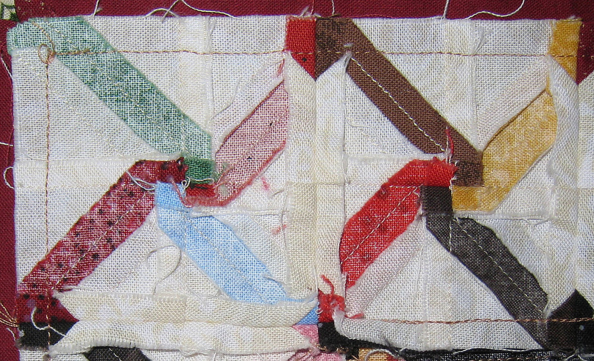 Annis, did you still use the foundation papers? If so, I assume that instead of starting with the center fabric, you started with one of the triangles so that both seams are pressed to the same side. Or did you start with the center strip and just press the seams to one side after the paper foundations were removed?Originally posted by ajclappStacked is when the seams are going in the same direction and are on top of each other. Nestled is when they are going in opposite directions. The lattice blocks were supposed to be pieced with the seams going away from the center. I pieced mine with the seams going in one direction so when they were assembled they would nestle together.Originally posted by ritzyI don't understand the differenceOriginally posted by ajclappVery pretty and colorful, Dawn! I understand the difference between stacked and nestled. That's why I pieced mine so they would be nestled. But sometimes you don't have a choice.