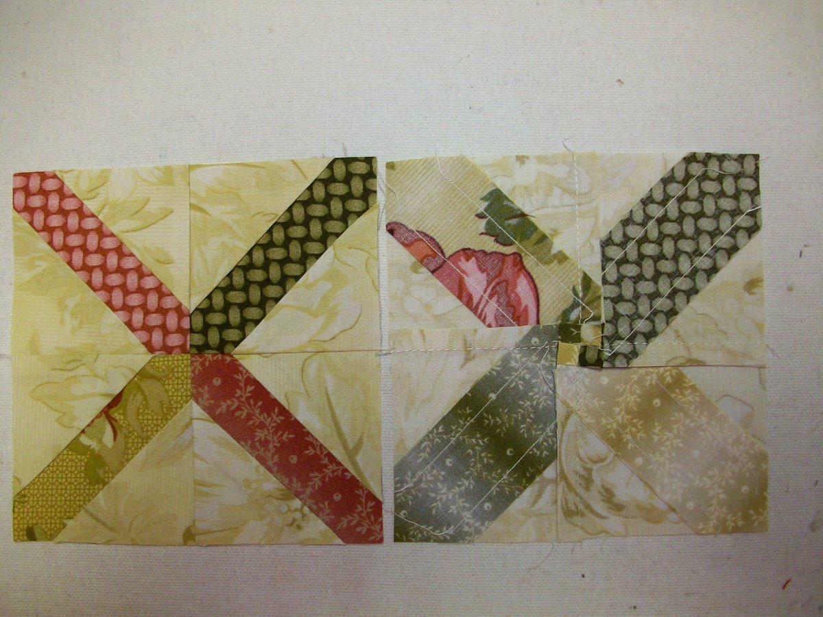 These are my assembled units. Notice that I have twirled the intersections for a flat seam. There are more directions explaining how I do that in my additional tutorial that can be found right under Sue's instructions.