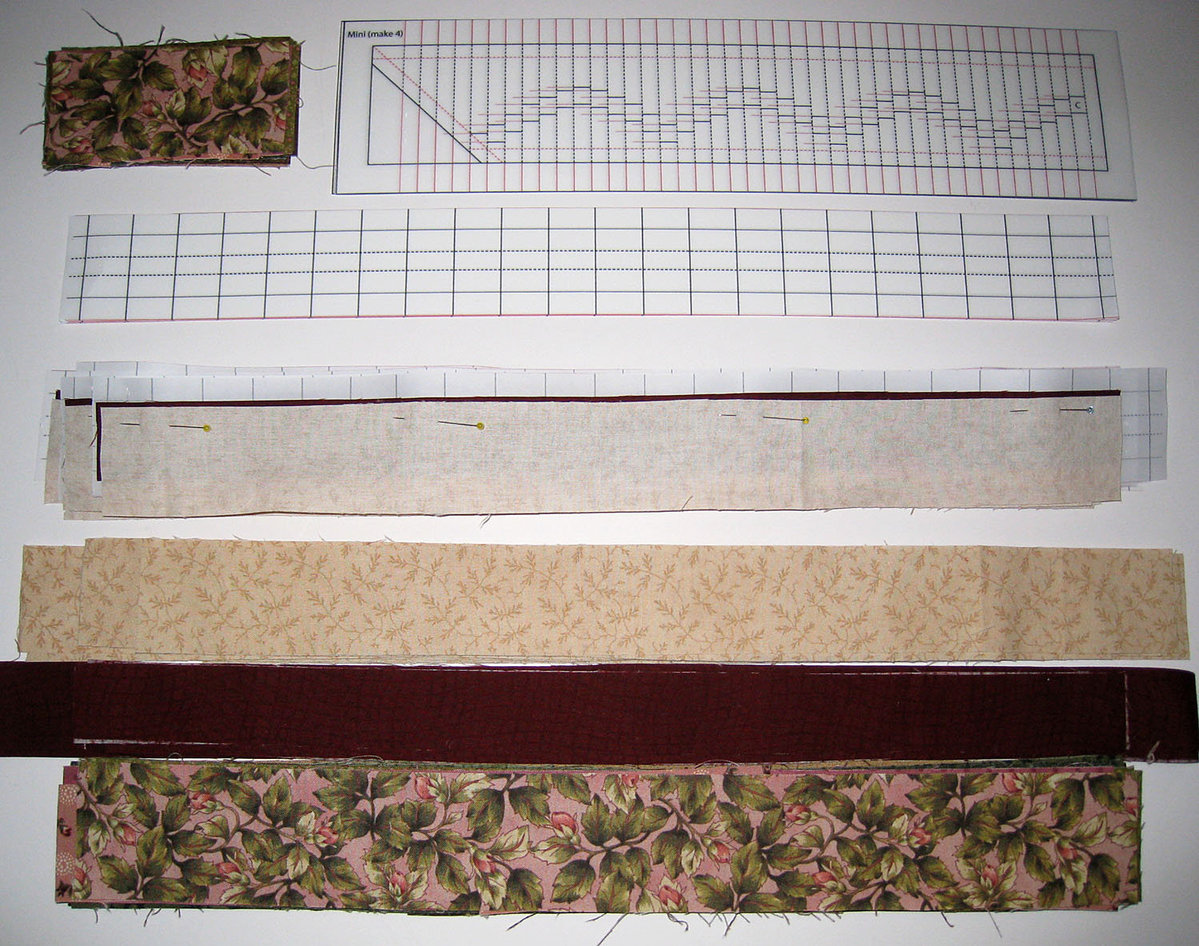 I've been working on my other job (NQR) and was feeling a little down. I decided the best way to cheer up was to get started on the pieced swag border for my mini quilt. All of the strips are cut, the paper piecing templates made and I'm getting ready to start sewing. I cut all of the strips for the widest width which only required 2" of fabric for this mini border. I hope to get it mostly done before Sunday as I will be going to Houston for one day, then back to my NQR job for the following week. I'm enjoying viewing all of the quilts that are being posted from Houston.