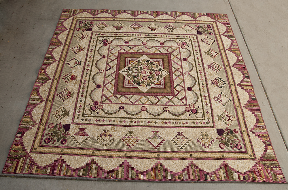 Kathy, I am delighted to say that I got the binding on last night. I did a 3/8" seam as well. I watched a Sharon Shambers youtube tutorial on binding a quilt where she spray-starched the back of the binding strips just before she ironed them in half and that kind of stuck the binding together. She also used glue to stick the binding to the quilt before sewing it down - but I didn't do that. I saw another useful tutorial somewhere else which suggested that when you get to the end and are joining the two strips together, turn the quilt over and sew the remaining 10" or whatever it is from the back and this stops it puckering on the binding itself. These ideas really helped with keeping the binding straight on the quilt. This is going to be a very narrow binding on such a big quilt but it can't be helped because the flowers in the outer appliqué corners are so close to the edge on mine that I have barely avoided covering them with the binding. Now I just have to hand sew the binding to the back, make a label and then I have to decide whether it is worth the trouble of making a hanging sleeve.