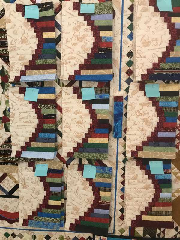 I haven't started sewing my swags together yet, but they are all cut out. I figured out the math for each added section. Sue recommended that we measure after adding each section so that we can adjust our seam as we go so that our swags end up being perfect! I really love Sue's patterns and her mind was simply amazing.