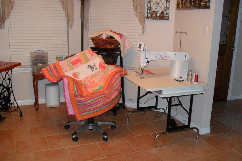 Congratulations, Linda! Mine is on carpet, so I put sliders under the legs for when I want to move it. You may want to figure out a system for side tables to help hold large quilts. I'm seeing discussion on the Yahoo forum of a new cabinet with extensions on both sides, but it's $2000.
