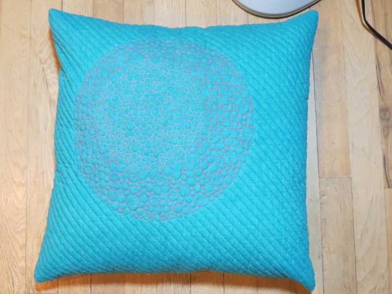 I hadn't realised that the circle had no edge, it's just made from the bubbles. I noticed some of her pea pod quilting is like that as well. I tried doing that but kind of forgot during execution. It gives your quilt an extra edge so the bubbles are held together by their own magnetism. Like a nest of spiders that if you touch all fly apart.
