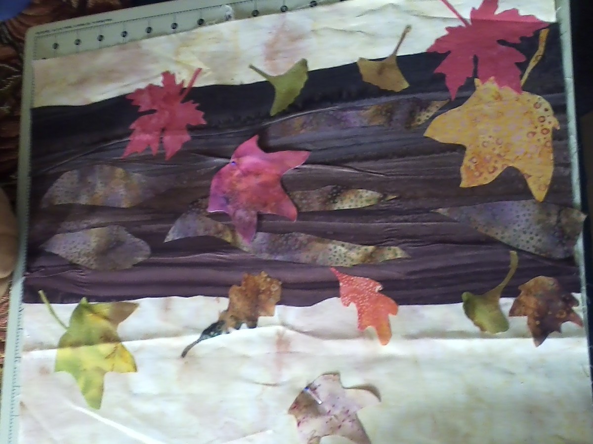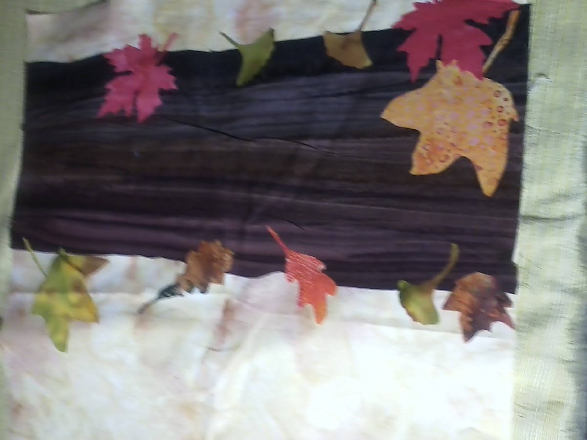 It had a nice start with tree trunk fabric great but I fused leaves in an ugly fashion and need help with color palate.