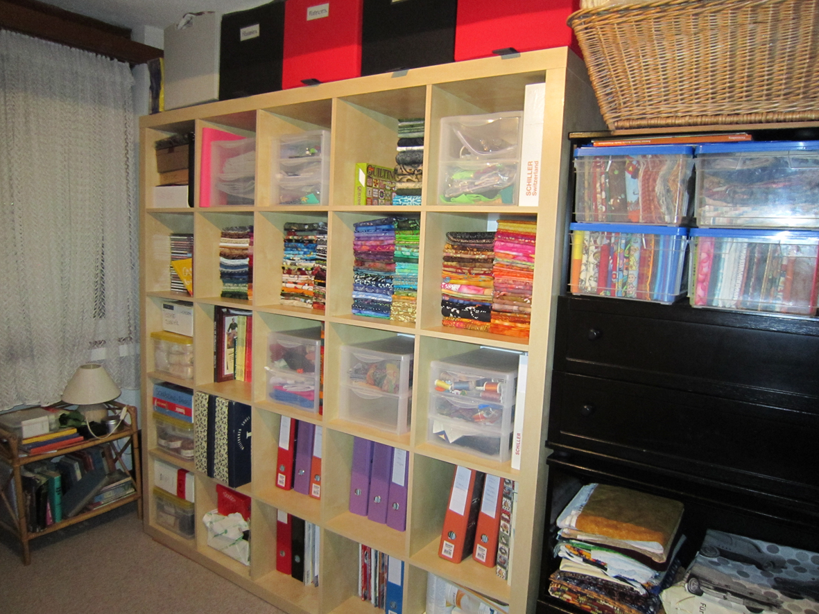 Nothing like moving across the ocean to help with cleaning out all the things you haven't used while living in that house. Okay, okay, I couldn't quite part with any quilting magazines. I did clean out duplicates (how did that happen!) and catalogs. I did get rid of a couple shelves of nonquilting magazines, though. And, yes, they were in my sewing room. That was really difficult. I had several years (a decade!?) of Martha Stewart and La Cucina Italiana. When DDs came to visit for a holiday we would pull out the relevant issues and decide what to cook. We loved whipping up stuff that we wouldn't normally take the time to cook. So lots of memories tied up in those. But with the internet now a days...