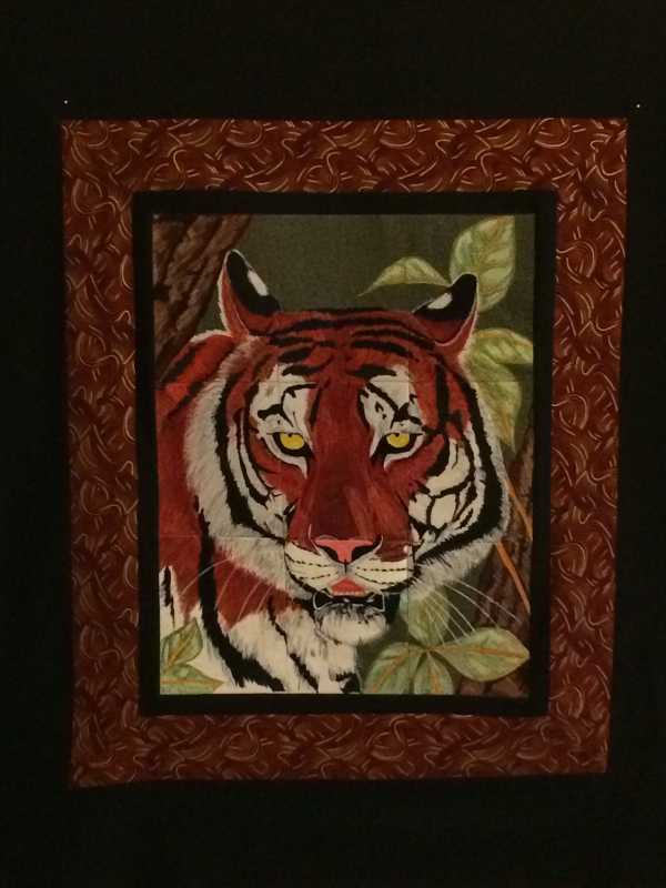Your tiger quilt is beautiful. Very striking. Please explain a little more about it. What is tile embroidery? Is your quilt one tile or several tiles?