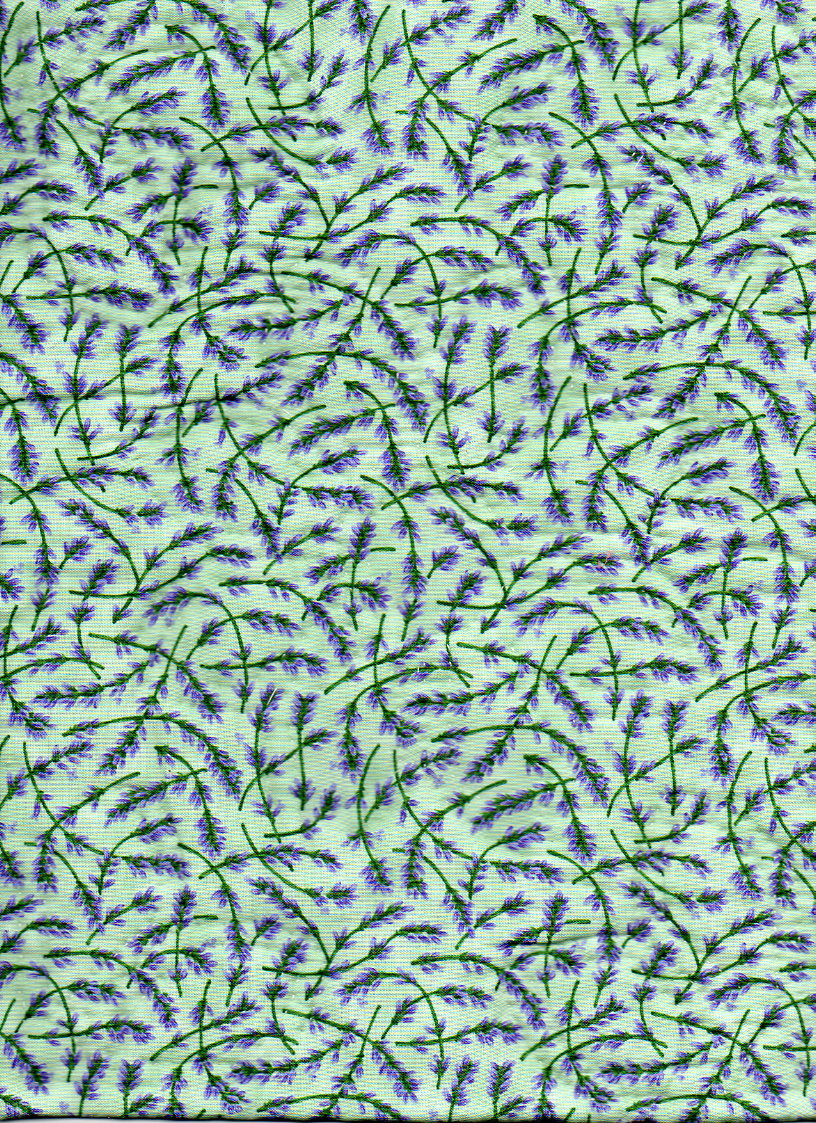 Rosemary, I just relooked the binding of your little quilt--although it gave off a blue hue at a distance, on closer look it appears to be seafoam green with lavender flowers. Am I still mis-reading the colors? :?