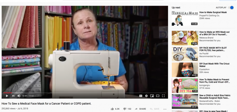 Roxanne, I don't have any info on making face masks but I just googled it and there are you tubes on line. This screen shot is of one